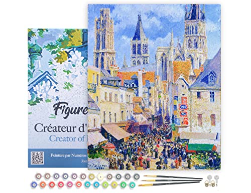 Figured'Art Peinture par Numéro Adulte avec Cadre Rue de l'Épicerie, Rouen - Camille Pissarro - Activité Manuelle Kit de Loisir Créatif DIY Numéro d'Art Complet - 40x50cm toile tendue sur châssis