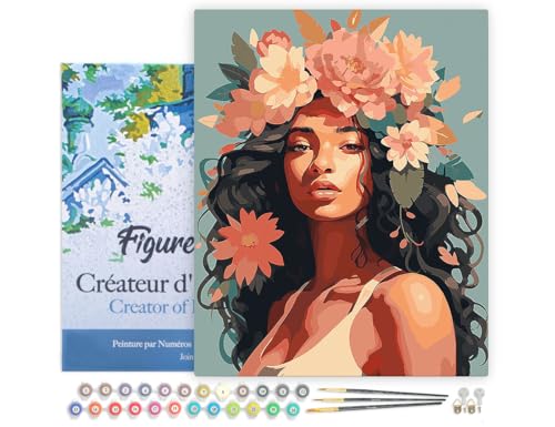 Figured'Art Peinture par Numéro Adulte avec Cadre Visage et Fleurs - Activité Manuelle Kit de Loisir Créatif DIY Numéro d'Art Complet - 40x50cm toile tendue sur châssis