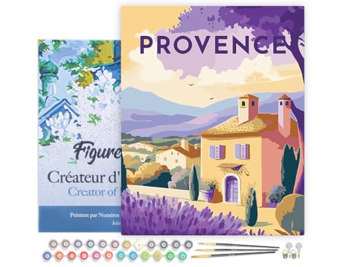 Figured'Art Peinture par Numéro Adulte avec Cadre Affiche Vintage Provence - Activité Manuelle Kit de Loisir Créatif DIY Numéro d'Art Complet - 40x50cm toile tendue sur châssis