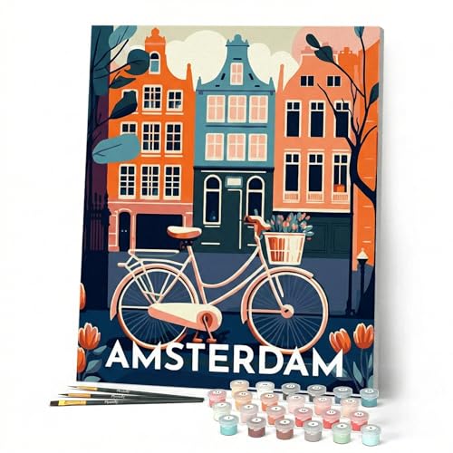 Figured'Art Peinture par Numéro Adulte avec Cadre - 40x50cm Toile tendue sur Châssis - Kit Loisir Créatif Détente - Déco DIY - Vintage Amsterdam