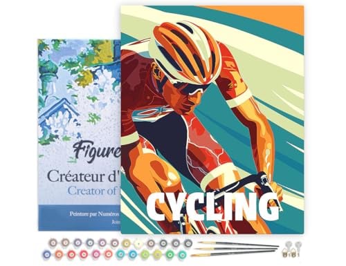 Figured'Art Peinture par Numéro Adulte avec Cadre Affiche sportive Cyclisme - Activité Manuelle Kit de Loisir Créatif DIY Numéro d'Art Complet - 40x50cm toile tendue sur châssis