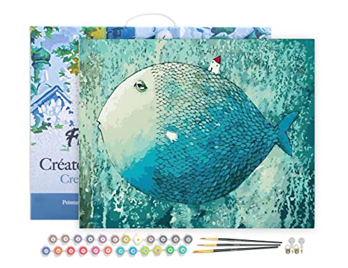 Figured'Art Peinture par Numéro Adulte avec Cadre Poisson Artistique - Activité Manuelle Kit de Loisir Créatif DIY Numéro d'Art Complet - 40x50cm toile tendue sur châssis
