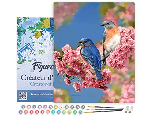 Figured'Art Peinture par Numéro Adulte avec Cadre Couple d'oiseaux bleus - Activité Manuelle Kit de Loisir Créatif DIY Numéro d'Art Complet - 40x50cm toile tendue sur châssis