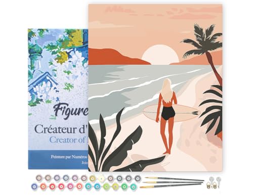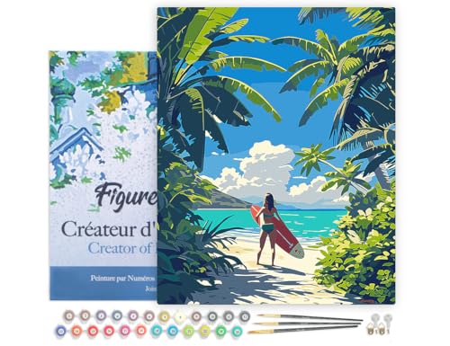 Figured'Art Peinture par Numéro Adulte avec Cadre Paradis tropical du surf - Activité Manuelle Kit de Loisir Créatif DIY Numéro d'Art Complet - 40x50cm toile tendue sur châssis