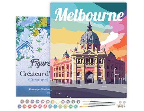 Figured'Art Peinture par Numéro Adulte avec Cadre Affiche de voyage Melbourne - Activité Manuelle Kit de Loisir Créatif DIY Numéro d'Art Complet - 40x50cm toile tendue sur châssis