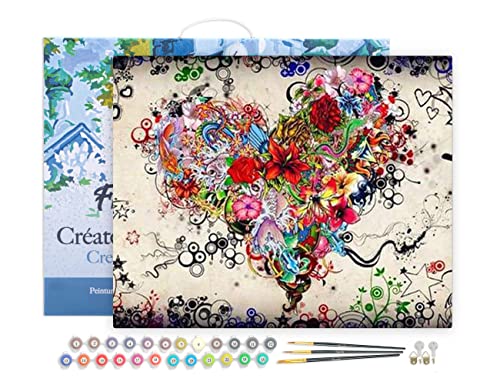 Figured'Art Peinture par Numéro Adulte avec Cadre Coeur de Fleurs - Activité Manuelle Kit de Loisir Créatif DIY Numéro d'Art Complet - 40x50cm toile tendue sur châssis