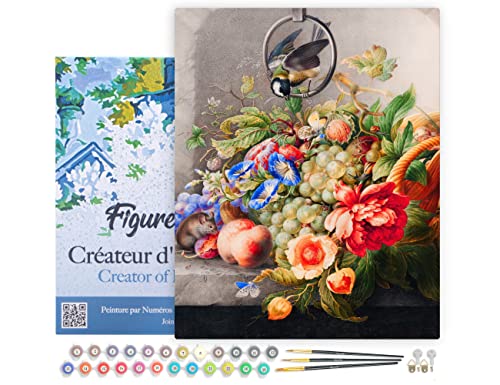 Figured'Art Peinture par Numéro Adulte avec Cadre Fleurs et Fruits - Severin Roesen - Activité Manuelle Kit de Loisir Créatif DIY Numéro d'Art Complet - 40x50cm toile tendue sur châssis