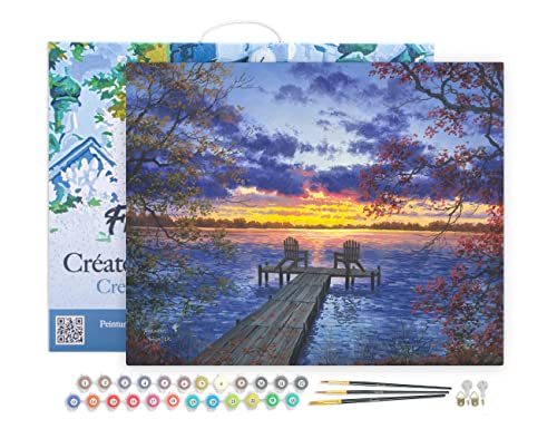 Figured'Art Peinture par Numéro Adulte avec Cadre Ponton au coucher de soleil - Activité Manuelle Kit de Loisir Créatif DIY Numéro d'Art Complet - 40x50cm toile tendue sur châssis