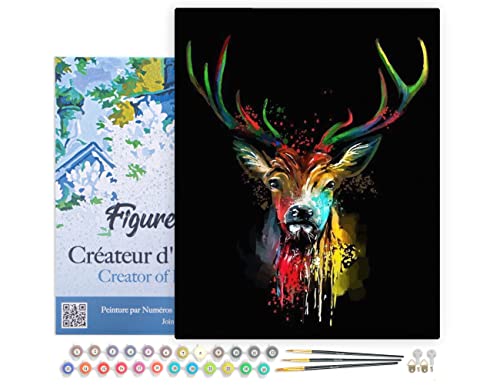 Figured'Art Peinture par Numéro Adulte avec Cadre Cerf en Couleur - Activité Manuelle Kit de Loisir Créatif DIY Numéro d'Art Complet - 40x50cm toile tendue sur châssis
