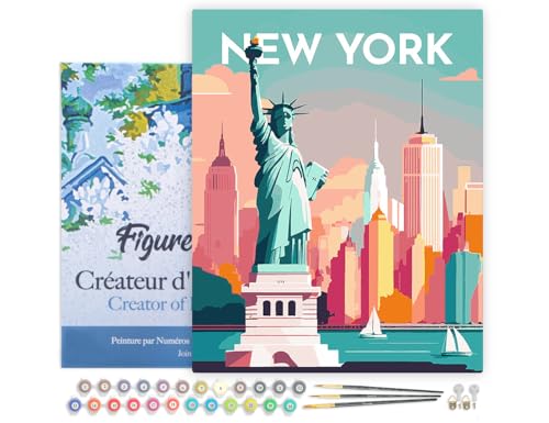 Figured'Art Peinture par Numéro Adulte avec Cadre - 40x50cm Toile tendue sur Châssis - Kit Loisir Créatif Détente - Déco DIY - Vintage New York