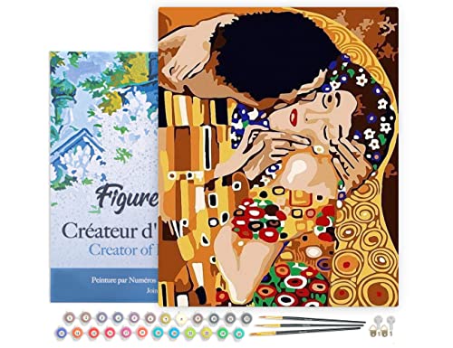 Figured'Art Peinture par Numéro Adulte avec Cadre Tendre Baiser - Activité Manuelle Kit de Loisir Créatif DIY Numéro d'Art Complet - 40x50cm toile tendue sur châssis