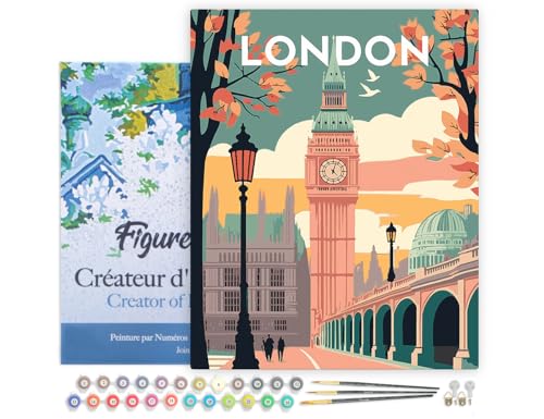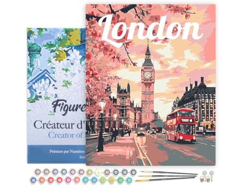 Figured'Art Peinture par Numéro Adulte avec Cadre - 40x50cm Toile tendue sur Châssis - Kit Loisir Créatif Détente - Déco DIY - Vintage Londres 2
