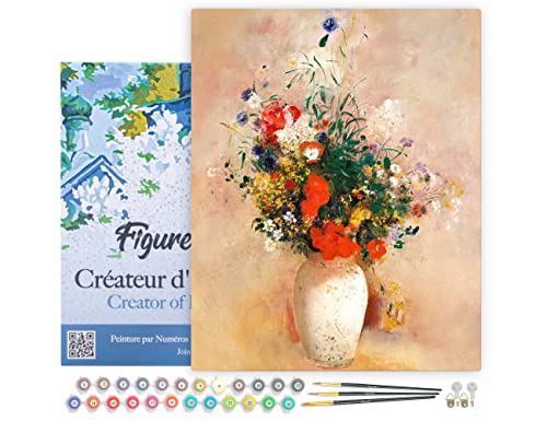 Figured'Art Peinture par Numéro Adulte avec Cadre Vase de Fleurs - Odilon Redon - Activité Manuelle Kit de Loisir Créatif DIY Numéro d'Art Complet - 40x50cm toile tendue sur châssis