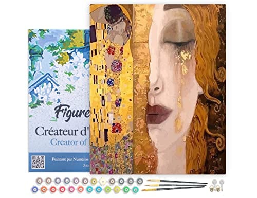 Figured'Art Peinture par Numéro Adulte avec Cadre Gustav Klimt - Activité Manuelle Kit de Loisir Créatif DIY Numéro d'Art Complet - 40x50cm toile tendue sur châssis