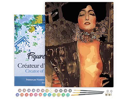 Figured'Art Peinture par Numéro Adulte avec Cadre Gustav klimt Judith - Activité Manuelle Kit de Loisir Créatif DIY Numéro d'Art Complet - 40x50cm toile tendue sur châssis