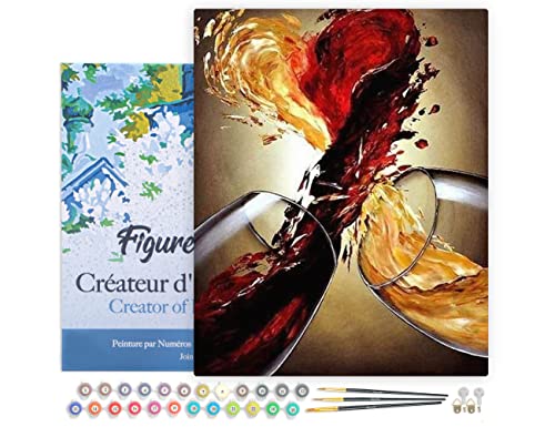 Figured'Art Peinture par Numéro Adulte avec Cadre Mélanges de Vins - Activité Manuelle Kit de Loisir Créatif DIY Numéro d'Art Complet - 40x50cm toile tendue sur châssis