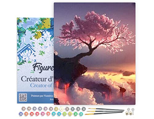 Figured'Art Peinture par Numéro Adulte avec Cadre Arbre rose et Nuages - Activité Manuelle Kit de Loisir Créatif DIY Numéro d'Art Complet - 40x50cm toile tendue sur châssis