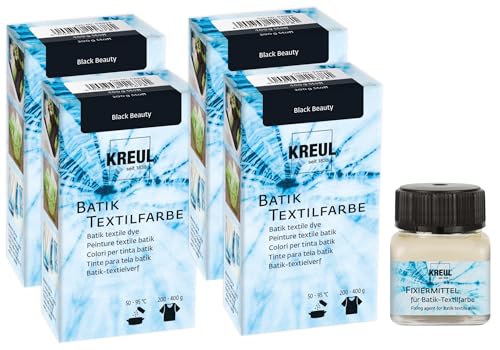 KREUL KREUL-35604-98599, Lot de 4 Couleurs Tendance « Black Beauty fixateur, Peinture pour teindre et batiker Les Textiles, Multicolour, 4x 70g + 20 ml