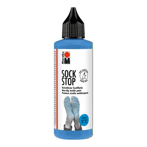 Marabu 17220106090 - Sock Stop - 90 ML - Bleu Clair - Peinture antidérapante à Base d'eau (Pas de Latex - pour Textiles, Maintien sûr sur sols Lisses - Facile à Utiliser de la Bouteille