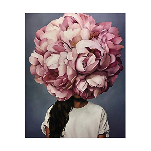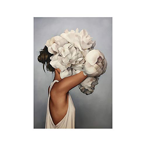 OYFFL Fleur Femme tête Nordique Abstrait Mur Art Impression Peinture Toile Affiche Moderne décoratif Photo Salon décoration (P,40 * 60cm sans Cadre)
