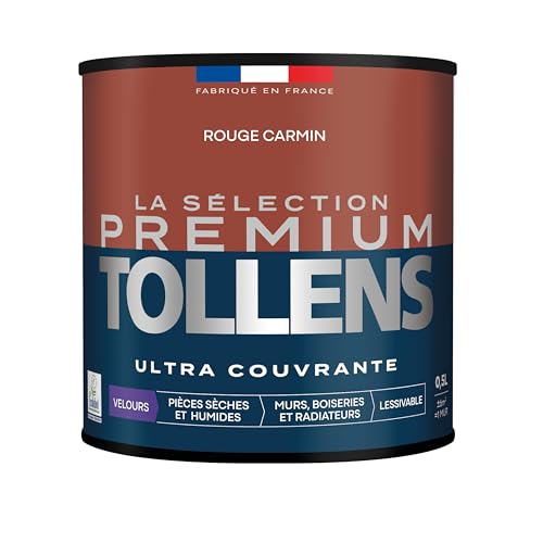 Tollens - Peinture Couleur - Murs, Boiseries & Radiateurs - La Sélection Premium - Pièces sèches et humides - Ultra couvrante - Ultra résistante - Ecolabel - Velours - ROUGE CARDINAL - 0L5 = 6m²