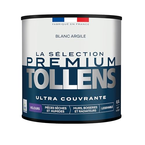 Tollens - Peinture Couleur - Murs, Boiseries & Radiateurs - La Sélection Premium - Pièces sèches et humides - Ultra couvrante - Ultra résistante - Ecolabel - Velours - BLANC ARGILE - 0L5 = 6m²