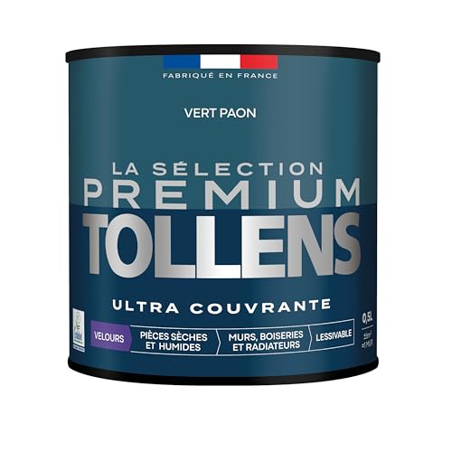 Tollens - Peinture Couleur - Murs, Boiseries & Radiateurs - La Sélection Premium - Pièces sèches et humides - Ultra couvrante - Ultra résistante - Ecolabel - Velours - VERT PAON - 0L5 = 6m²