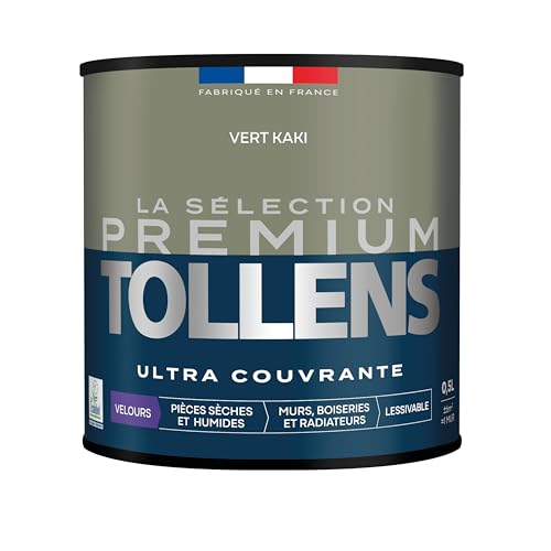 Tollens - Peinture Couleur - Murs, Boiseries & Radiateurs - La Sélection Premium - Pièces sèches et humides - Ultra couvrante - Ultra résistante - Ecolabel - Velours - VERT KAKI - 0L5 = 6m²