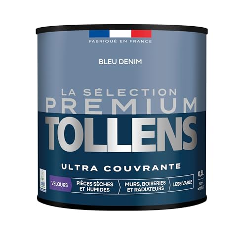 Tollens - Peinture Couleur - Murs, Boiseries & Radiateurs - La Sélection Premium - Pièces sèches et humides - Ultra couvrante - Ultra résistante - Ecolabel - Velours - BLEU DENIM - 0L5 = 6m²