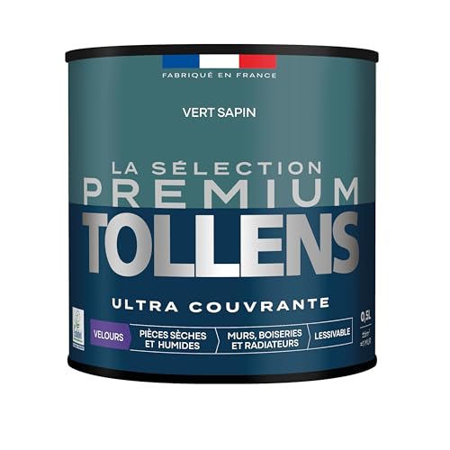 Tollens - Peinture Couleur - Murs, Boiseries & Radiateurs - La Sélection Premium - Pièces sèches et humides - Ultra couvrante - Ultra résistante - Ecolabel - Velours - VERT SAPIN - 0L5 = 6m²