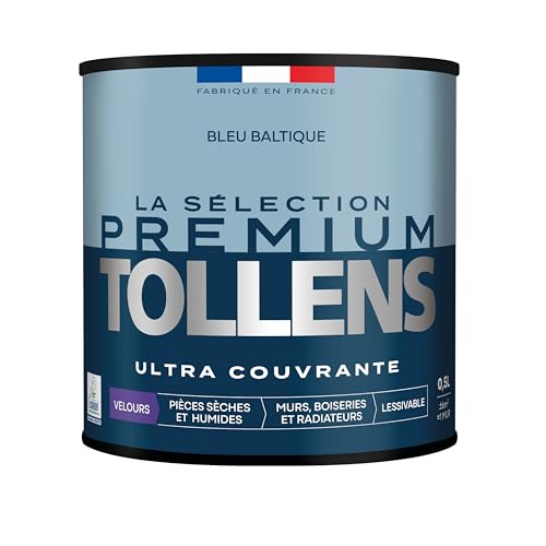 Tollens - Peinture Couleur - Murs, Boiseries & Radiateurs - La Sélection Premium - Pièces sèches et humides - Ultra couvrante - Ultra résistante - Ecolabel - Velours - BLEU BALTIQUE - 0L5 = 6m²