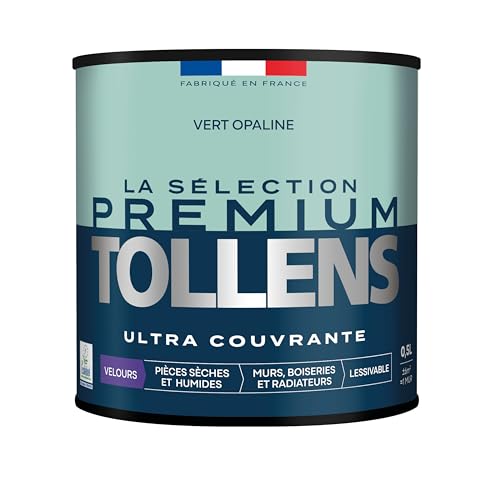 Tollens - Peinture Couleur - Murs, Boiseries & Radiateurs - La Sélection Premium - Pièces sèches et humides - Ultra couvrante - Ultra résistante - Ecolabel - Velours - VERT OPALINE - 0L5 = 6m²