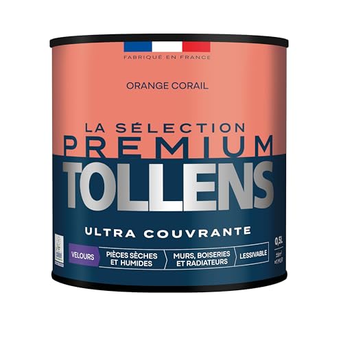 Tollens - Peinture Couleur - Murs, Boiseries & Radiateurs - La Sélection Premium - Pièces sèches et humides - Ultra couvrante - Ultra résistante - Ecolabel - Velours - ORANGE CORAIL - 0L5 = 6m²
