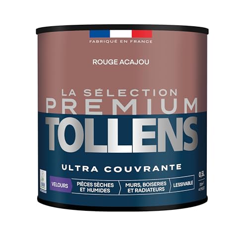 Tollens - Peinture Couleur - Murs, Boiseries & Radiateurs - La Sélection Premium - Pièces sèches et humides - Ultra couvrante - Ultra résistante - Ecolabel - Velours - ROUGE ACAJOU - 0L5 = 6m²