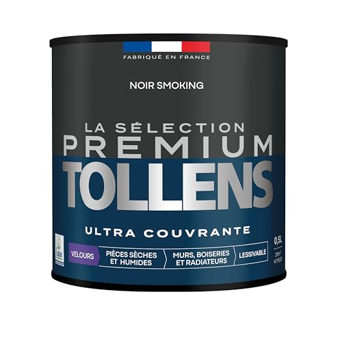 Tollens - Peinture Couleur - Murs, Boiseries & Radiateurs - La Sélection Premium - Pièces sèches et humides - Ultra couvrante - Ultra résistante - Ecolabel - Velours - NOIR SMOKING - 0L5 = 6m²