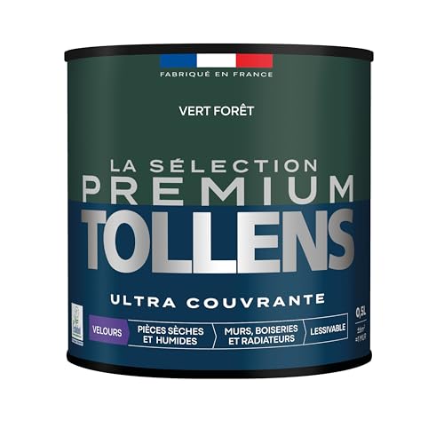 Tollens - Peinture Couleur - Murs, Boiseries & Radiateurs - La Sélection Premium - Pièces sèches et humides - Ultra couvrante - Ultra résistante - Ecolabel - Velours - VERT FORÊT - 0L5 = 6m²