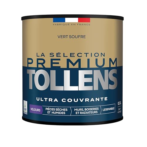 Tollens - Peinture Couleur - Murs, Boiseries & Radiateurs - La Sélection Premium - Pièces sèches et humides - Ultra couvrante - Ultra résistante - Ecolabel - Velours - VERT SOUFRE - 0L5 = 6m²