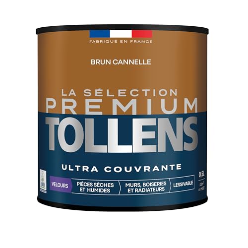 Tollens - Peinture Couleur - Murs, Boiseries & Radiateurs - La Sélection Premium - Pièces sèches et humides - Ultra couvrante - Ultra résistante - Ecolabel - Velours - BRUN CANNELLE - 0L5 = 6m²