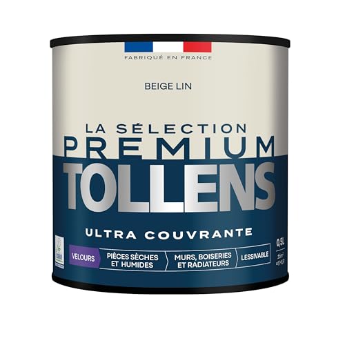 Tollens - Peinture Couleur - Murs, Boiseries & Radiateurs - La Sélection Premium - Pièces sèches et humides - Ultra couvrante - Ultra résistante - Ecolabel - Velours - BEIGE LIN - 0L5 = 6m²