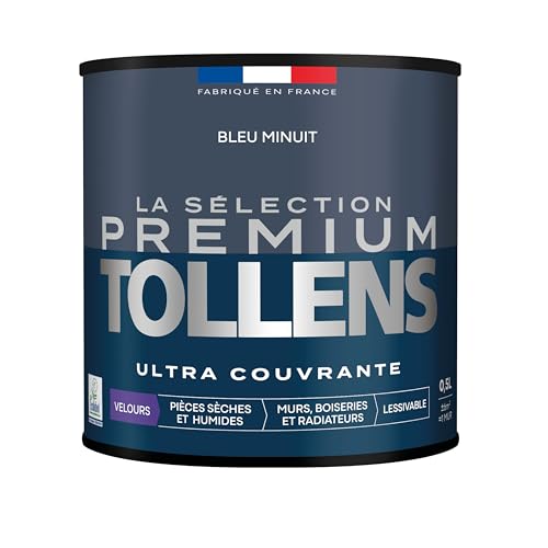 Tollens - Peinture Couleur - Murs, Boiseries & Radiateurs - La Sélection Premium - Pièces sèches et humides - Ultra couvrante - Ultra résistante - Ecolabel - Velours - BLEU MINUIT - 0L5 = 6m²