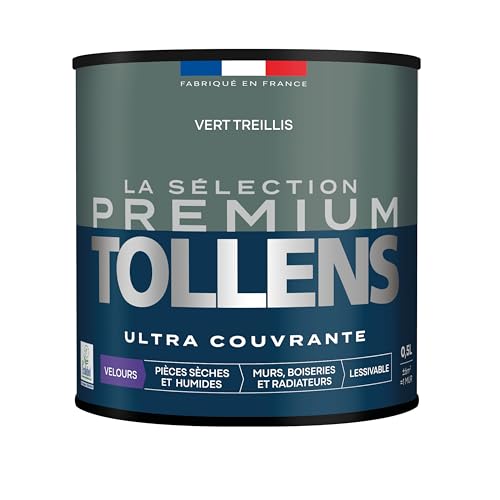 Tollens - Peinture Couleur - Murs, Boiseries & Radiateurs - La Sélection Premium - Pièces sèches et humides - Ultra couvrante - Ultra résistante - Ecolabel - Velours - VERT TREILLIS - 0L5 = 6m²