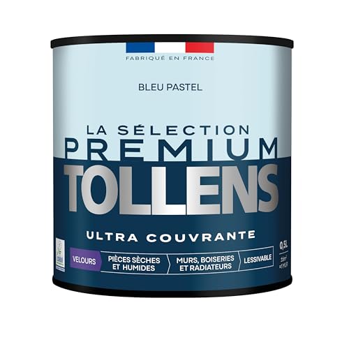 Tollens - Peinture Couleur - Murs, Boiseries & Radiateurs - La Sélection Premium - Pièces sèches et humides - Ultra couvrante - Ultra résistante - Ecolabel - Velours - BLEU PASTEL - 0L5 = 6m²