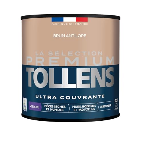 Tollens - Peinture Couleur - Murs, Boiseries & Radiateurs - La Sélection Premium - Pièces sèches et humides - Ultra couvrante - Ultra résistante - Ecolabel - Velours - BRUN ANTILOPE - 0L5 = 6m²