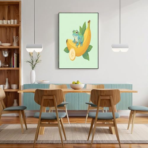 Tableau Décoratif Grenouille Mignonne Banane 70X100Cm - Impression Sur Toile Vert Sauge - Décoration Murale Sans Cadre Pour Salon Cuisine Chambre - Tableau Peinture Posters Thème Dessin Animé