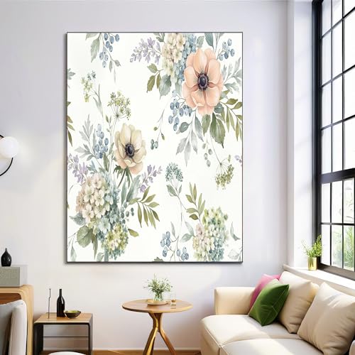 JRISEMECY Tableau Décoratif Aquarelle Hortensia Anémone 80X120Cm - Impression Sur Toile Vert Sauge - Décoration Murale Sans Cadre Pour Salon Cuisine Chambre - Tableau Peinture Posters Plantes D'Été