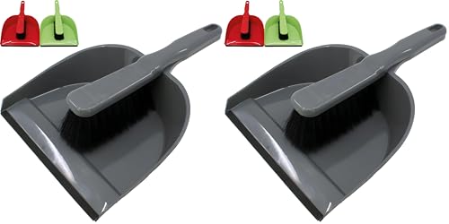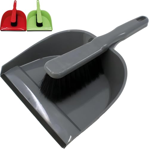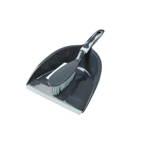 5five - Ensemble Pelle et Balayette Plastique Gris - Dents de Nettoyage Brosse - Bande en Caoutchouc Ramassage Facile - Entretien Ménager