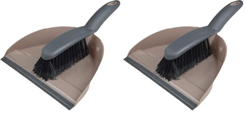 Homéa Pelle et Balayette Plastique avec Rebord en Gomme Taupe et Anthracite, Unique (Lot de 2)