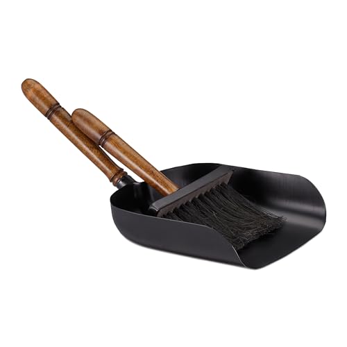 Relaxdays Accessoires de Nettoyage pour cheminée, Pelle & balayette, Fer & poignée en Bois, Poils de Jute, Noir - Marron