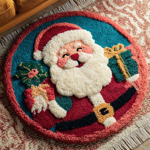 Kitquiver Kit De Crochet Peluche Père Noël De Dessin Animé Kit De Crochet,Kits De Nouage Adultes,Tapis Noué A Faire Motif Couleur Pré-Imprimé.50x50cm