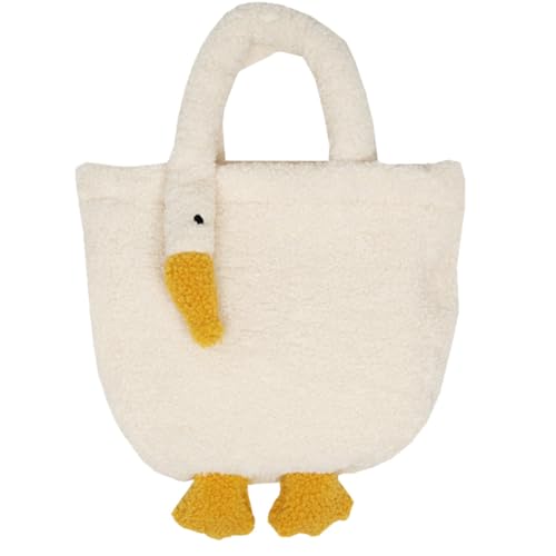 Ciieeo Paquet à Main en Peluche Forme Oie Doux et Léger pour Femme, Paquet Fourre-tout Cabas en Peluche Imitation Agneau, Pochette Polyvalente pour Voyage, École et Quotidien